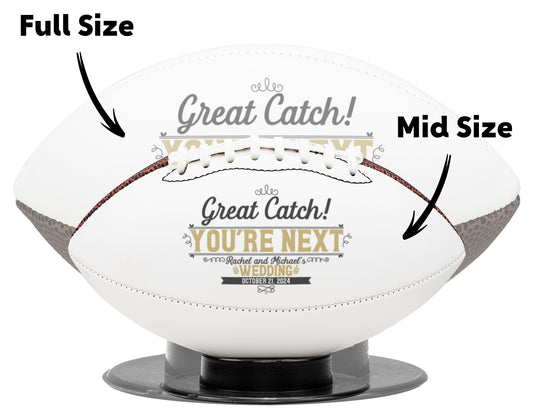 You’re Next Football for Wedding Reception Garter Toss Great Catch Personalized