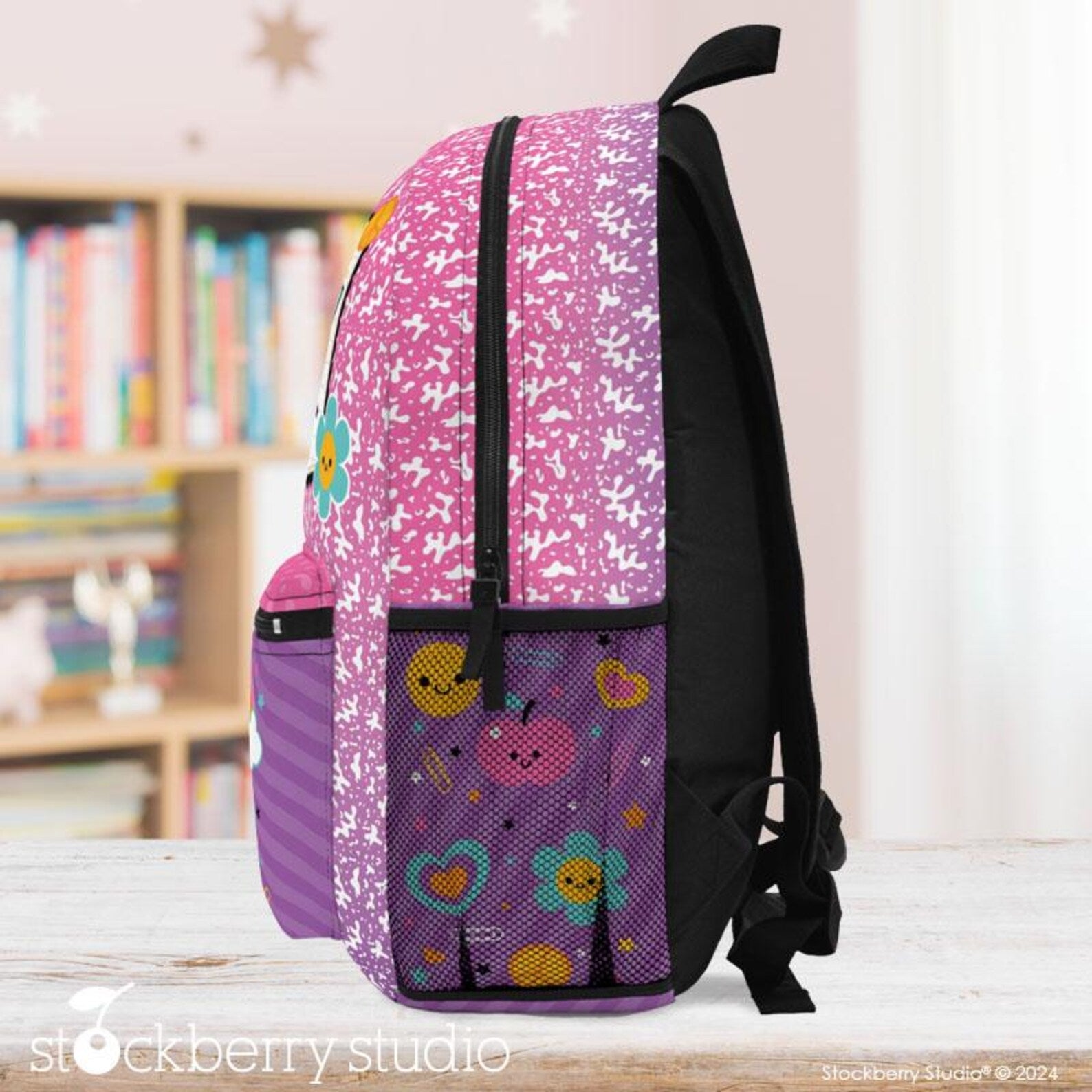 Personalized Rainbow Retro Groovy Backpack – Personalized Composition Book Style Kids School Bag