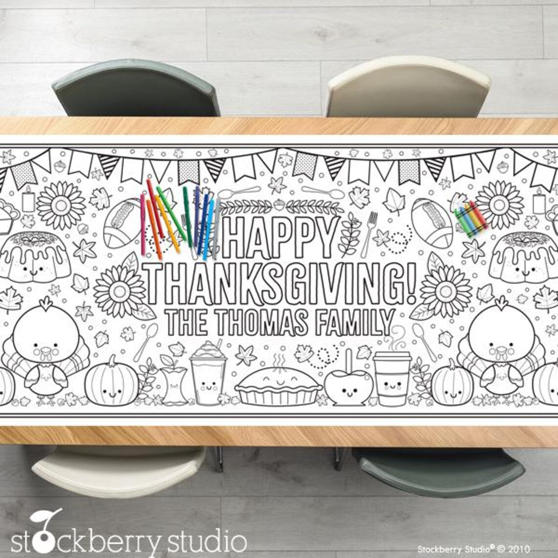 Personalized Thanksgiving Coloring Tablecloth Kids Turkey School Party Games Activity Poster Table Runner